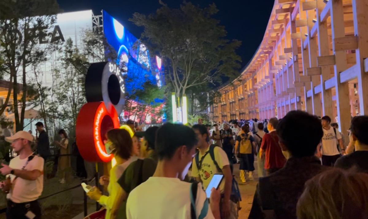 EXPO2025.9.11⑬トルクメニスタン外壁映像→パーレン王国→夕闇に浮かぶ黄金の大輪と彩り鮮やかなパビリオン、そしてひしめく人々の囀り→関西パビリオン→万博消防車🚒
